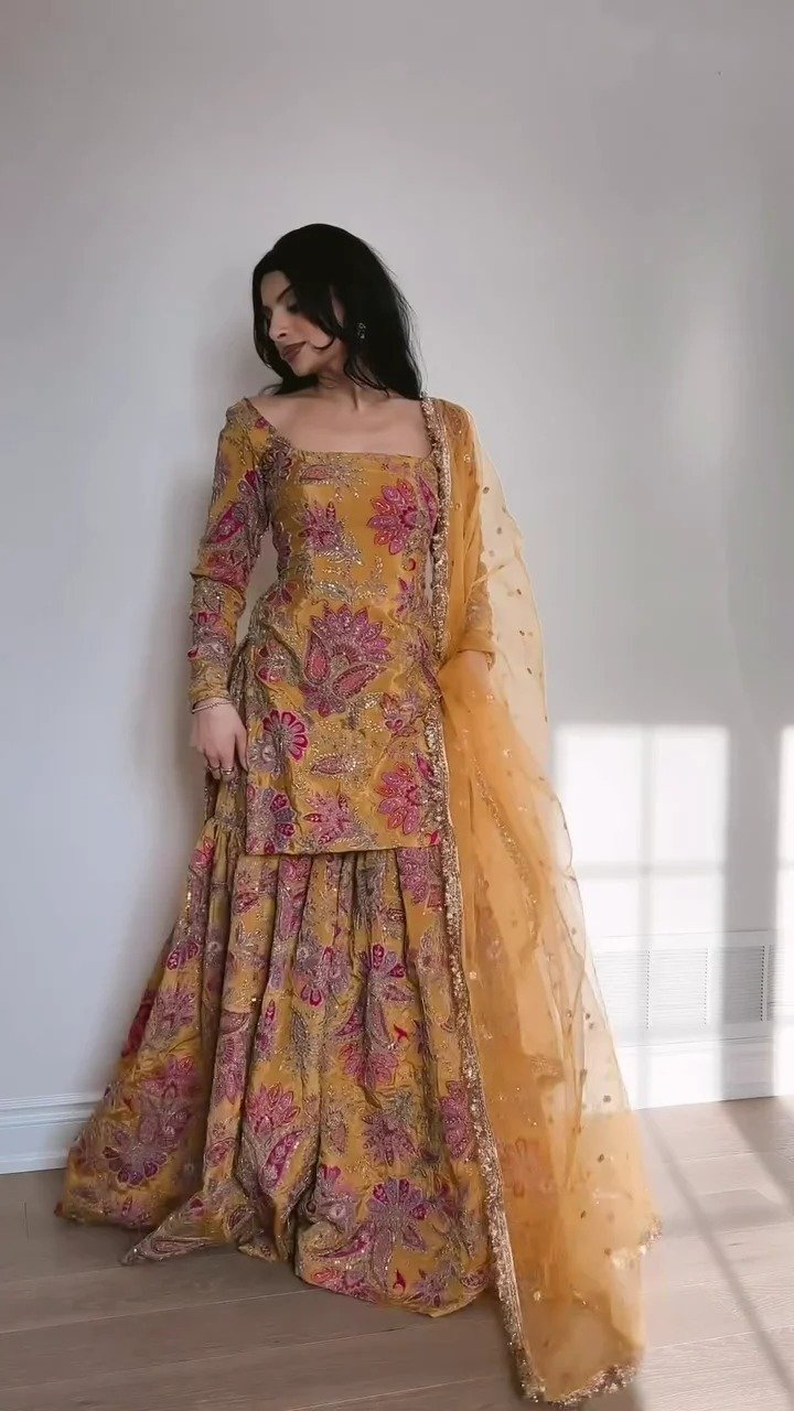 • High-Volume Flare: Crafted from high-quality fabric that provides a voluminous flare (ghera), ideal for twirling at weddings or parties.